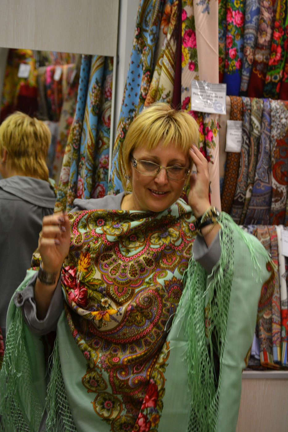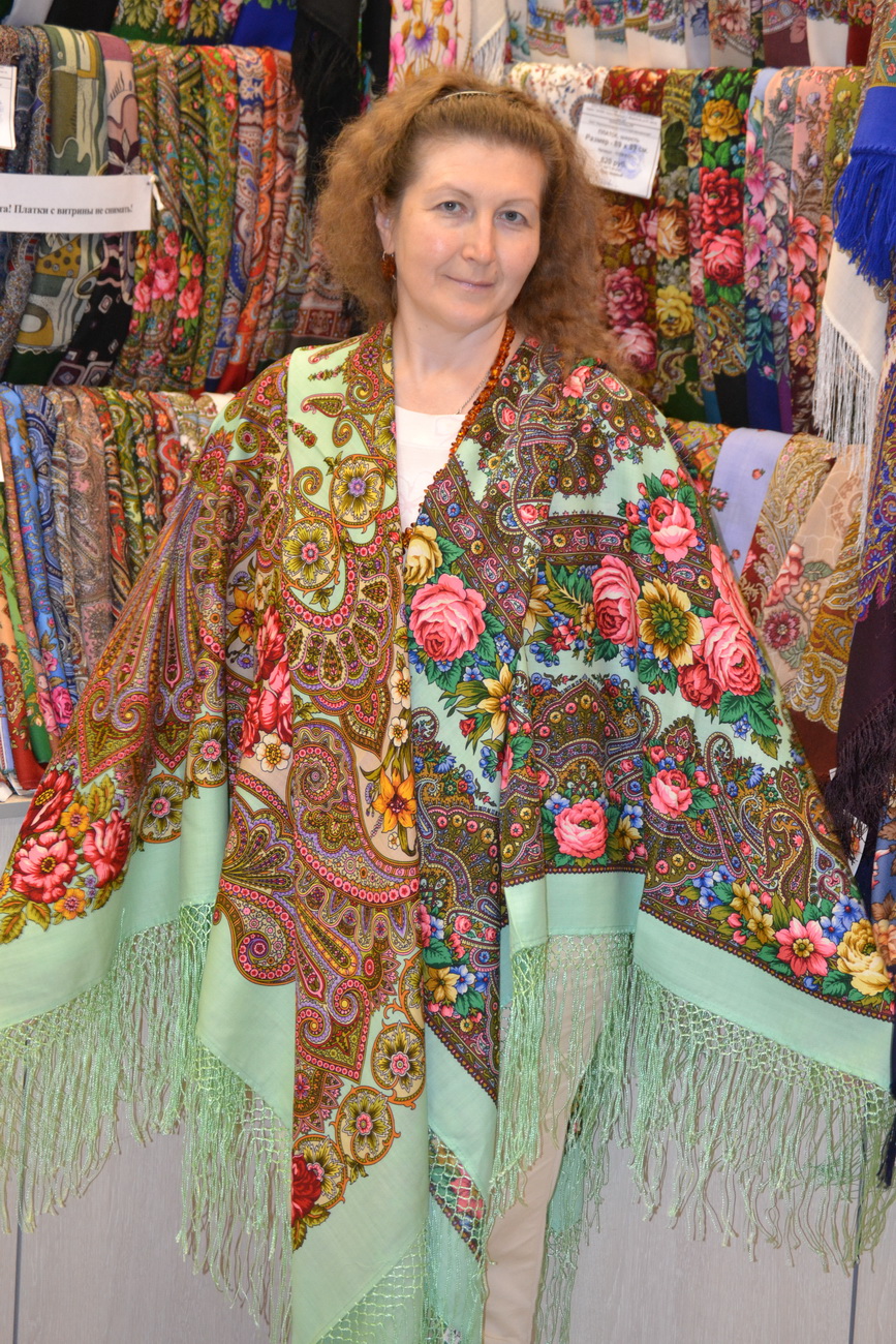 На фотографии видны отличие в мятно-бирюзовых грунтах у всех трёх шалей. Посередине КНЖЕСКИЙ 3