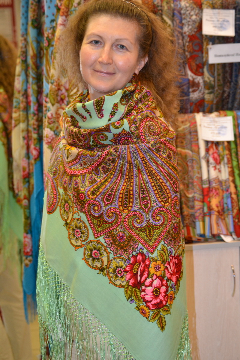 На фотографии видны отличие в мятно-бирюзовых грунтах у всех трёх шалей. Посередине КНЖЕСКИЙ 3