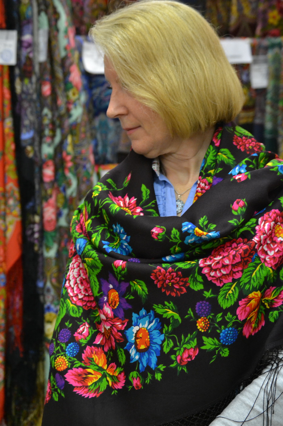 А то можно с ног сбиться - сколько шалей и все в каждой сфотографировались.