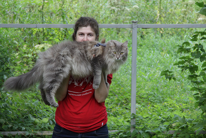 Вот такой стал большой, почти со свою "маму". Отрастил, как ему положено по статусу большой воротник и длинную шерсть на пузе и штанах.