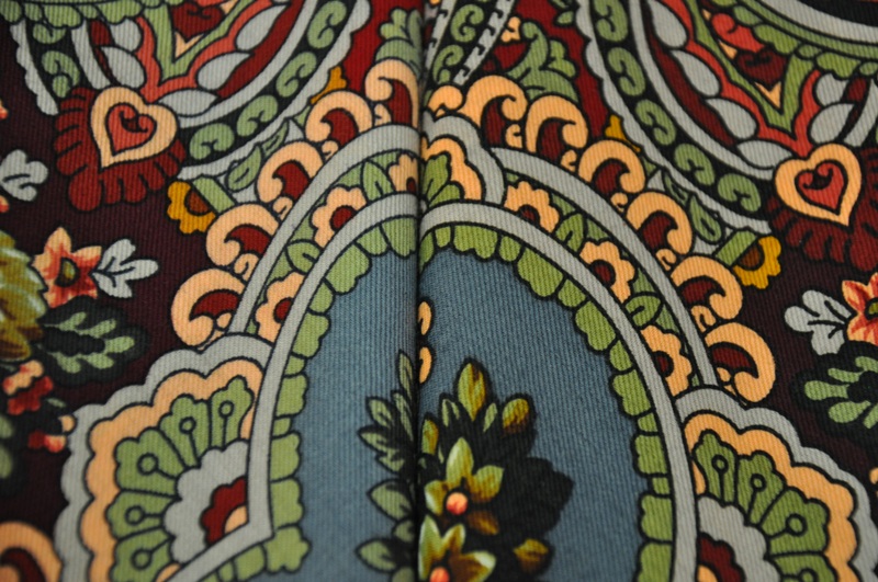 Сказка старого выпуска гораздо ярче, чем самый яркий экземпляр из новых. При этом, цвет загогулинок, который в новой печати, по выражению Светланы Murzavio - "цвета копченой форельки", в старом варианте - насыщенный персиковый. Серый в медальонах гораздо темнее и "грозовее". В целом - старая Сказка гораздо более теплая по цветовой гамме и очень контрастная по рисунку. Новая - варианты разные, есть поярче и потеплее. А есть по бледнее, розовый в загогулинках ближе в абрикосовому и вся она более монохромная, серо-розовая (за исключением красной серединки - цвет изумительный