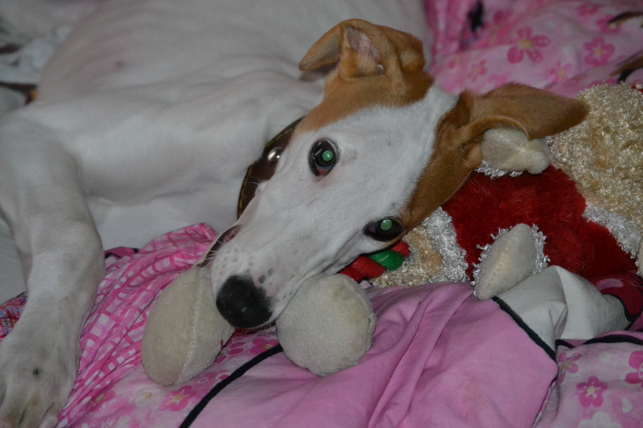 Прошу любить и жаловать - грейхаунд Маршал, 4 месяца: Сейчас это желудок на ножках. Еда в нём исчезает со сверхзвуковой скоростью. Ест рядом с Батильдой (5 лет), только в разы быстрее, а потом пытается и у неё угоститься. Иногда она разрешает