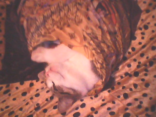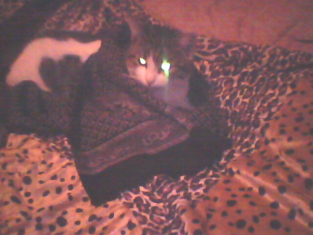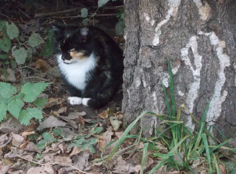 Вернулся Рыжик... через 3 недели, я с ним уже мысленно попрощалась. Да не один, а с девушкой... Похожа на Шушу, но не она. И не Клякса, у той нос рыжим цветом залит. Что- то трехцветок развелось много, к счастью, не иначе, только я уже всех сосчитать не в состоянии :? :D