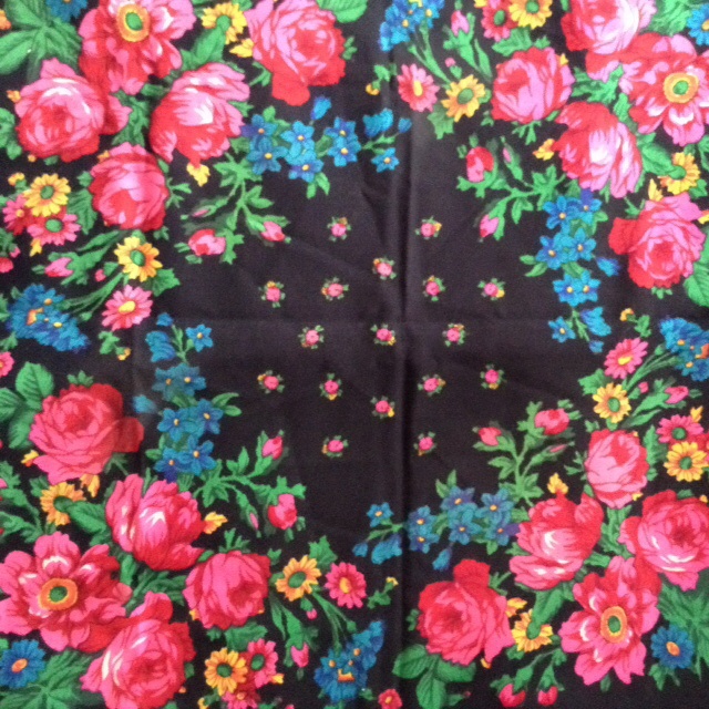 В бабушкиных запасах нашелся платок 89х89, с осыпкой, есть сомнения, что это ППП. Ткань какая-то толстоватая, из грубой шерсти. Но все равно заберу себе, хомяк доволен!