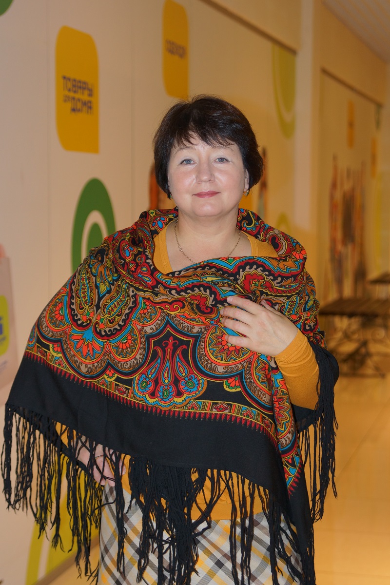 Женя тоже примеряла и красовалась в замечательных платочках. И, поверьте, ее грациозностью и удивительным умением завернуть и уложить платок трудно не восторгаться! А самое интересное, Женя принесла неизвестный платочек-старинку. Вроде, его фотографировали. Может, выложат девочки в другой теме...[/quote]