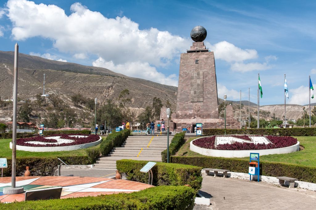 Парк Митад дель Мундо. Желтая линия, идущая через весь парк, - это экватор, который открыл Колумб