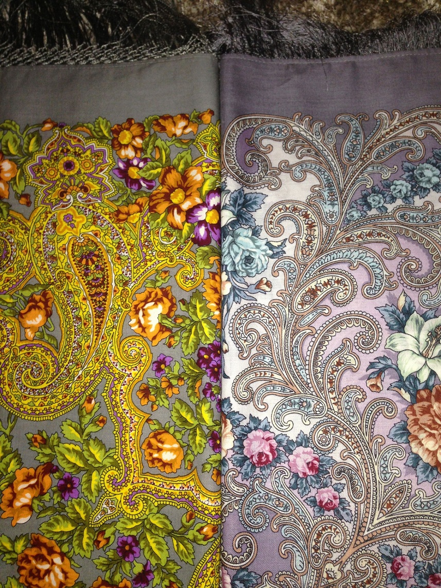 Решила сравнить чудом попавший ко мне платочек Тайна сердца с шалью У Самовара.