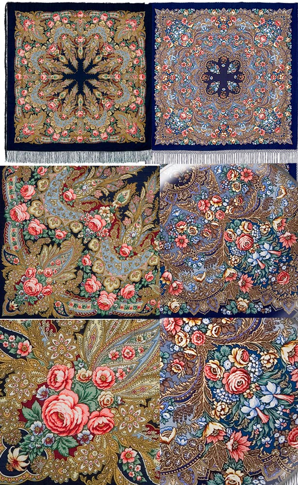 Очень понравился рисунок, очень рассчитывала, что это будет шаль, а не платок - такие рисунки не люблю носить в намотке, а для "пиджачков" платки мягковаты и бахрома не та. Но, возможно, синий колорит все же сможет мне сгладить тоску по синему Лету в Павлове.