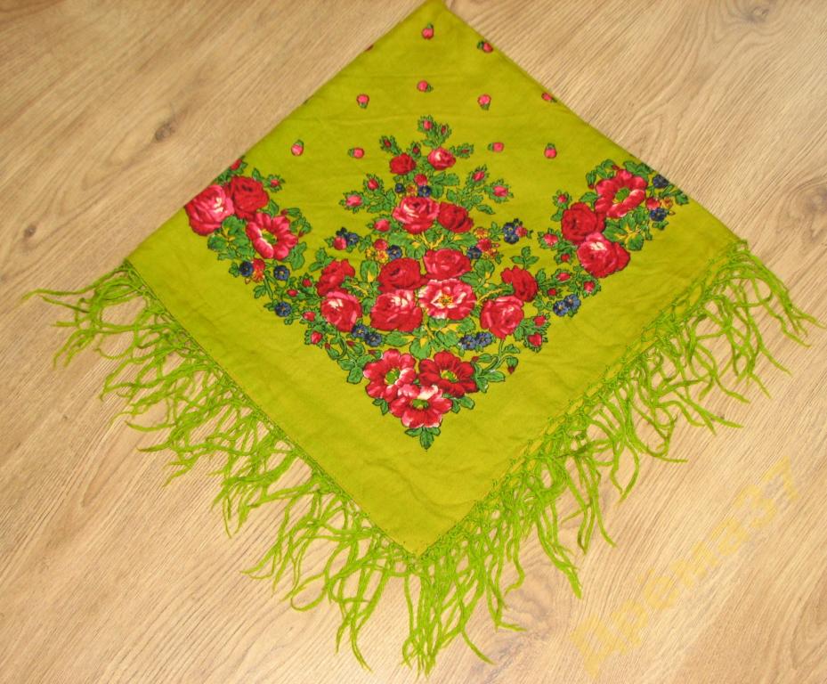 Тонкая шерсть 150 х 150 см. Чёрные кисти 50 см. Яркий насыщенный цвет. Идеальный сохран.