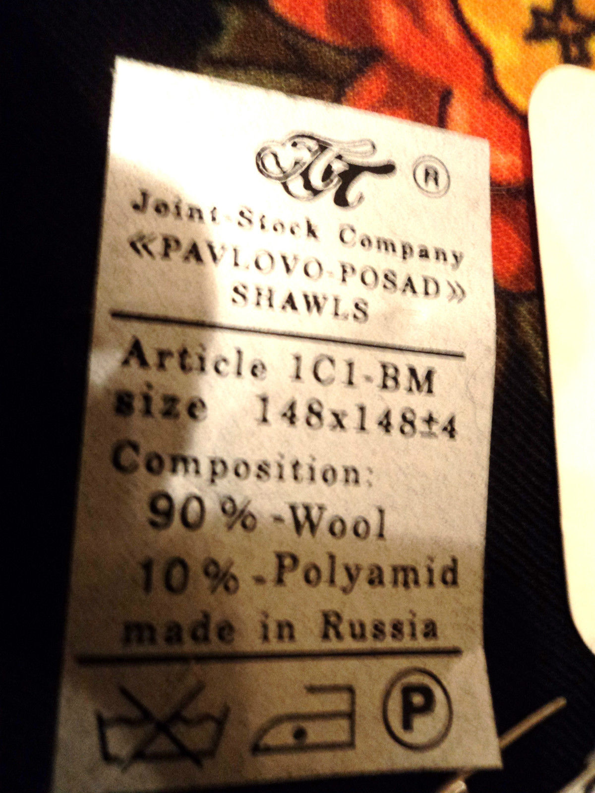 Но возможно, что это и подделка. Продавец пишет, что купила платок в середине 80х. На этикетке указано joint stock company. А акционерным обществом ППМ стала только в 1992 году. Но нельзя исключать и ошибку в указании правовой формы на этикетке на английском.