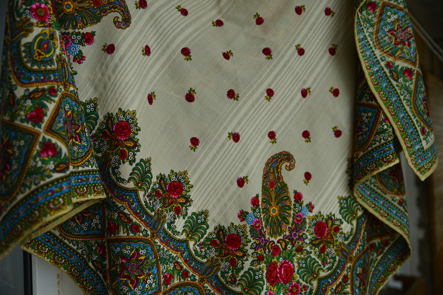 Сделала фото платочка, который расписывала бабушка брата в 70-х - 80-х годах на фабрике.