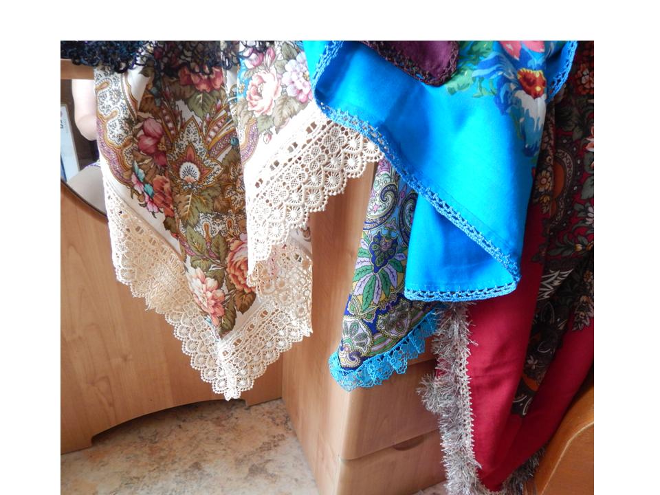 Мне чёрный платочек понравился и синий с "плоским" кружевом. Сама вязать крючком не научилась, кроме элементарных приёмов, поэтому платки не обвязываю.