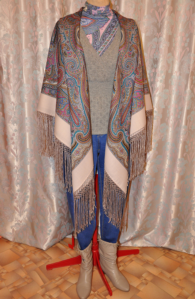 Понедельник запал в душу - никогда не обращала внимания на шали с серым полем, но это потрясающее сочетание с нежно-розовой блузкой и серой юбкой - просто нечто!