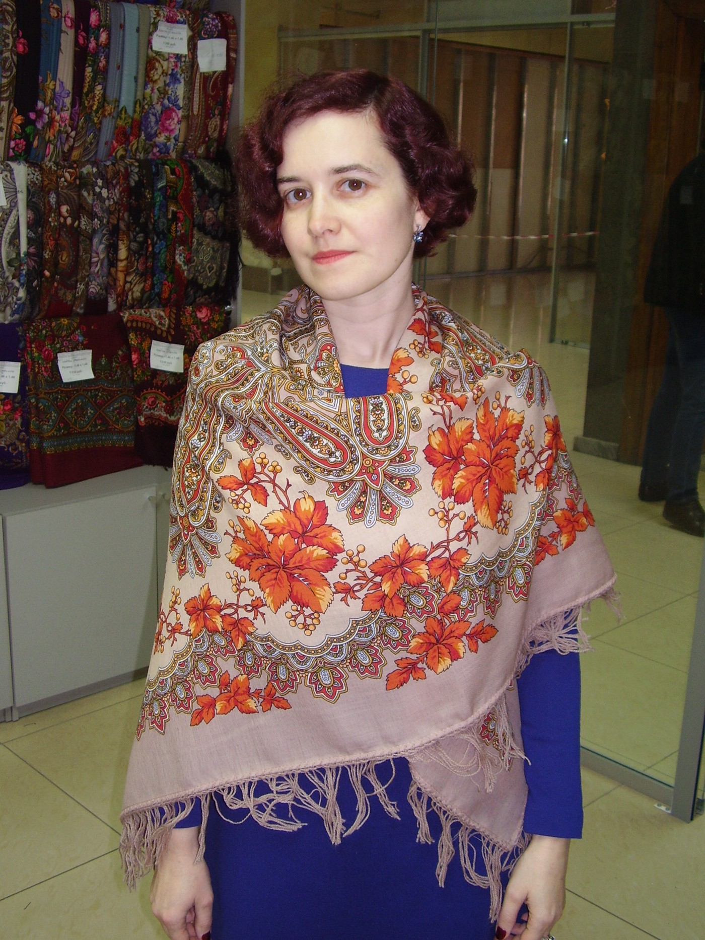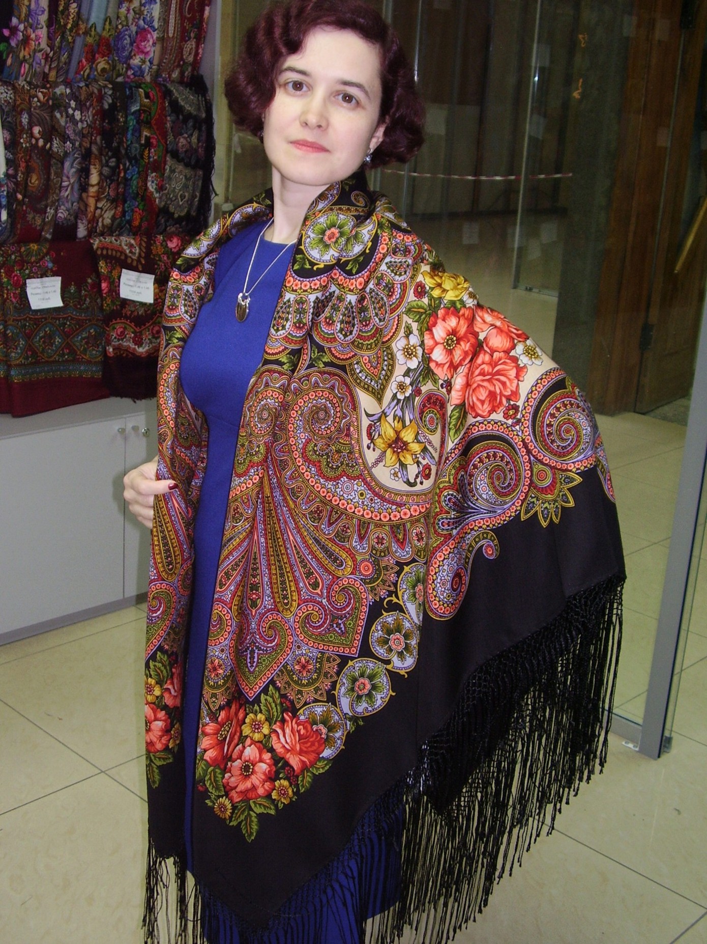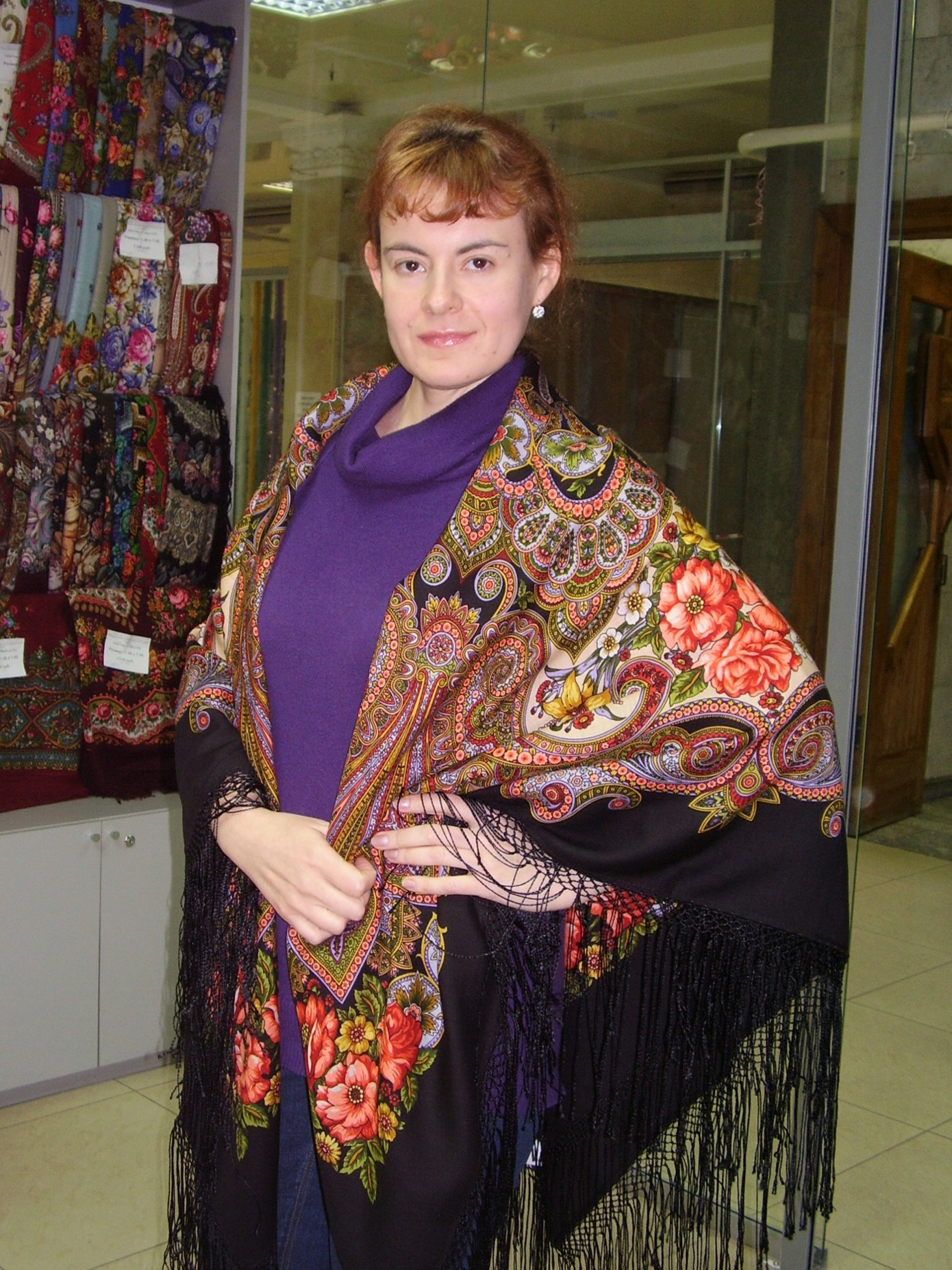 Демонстрируем ношение платков и шалей.