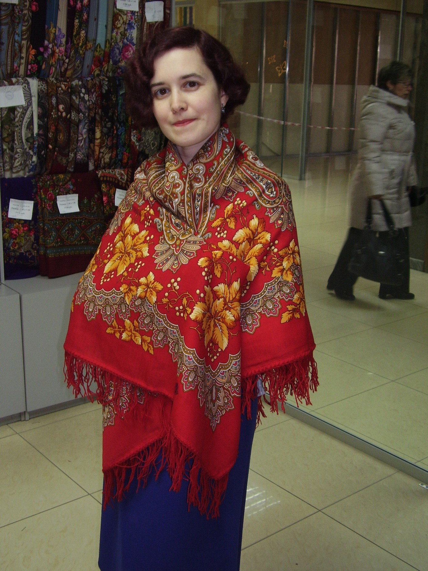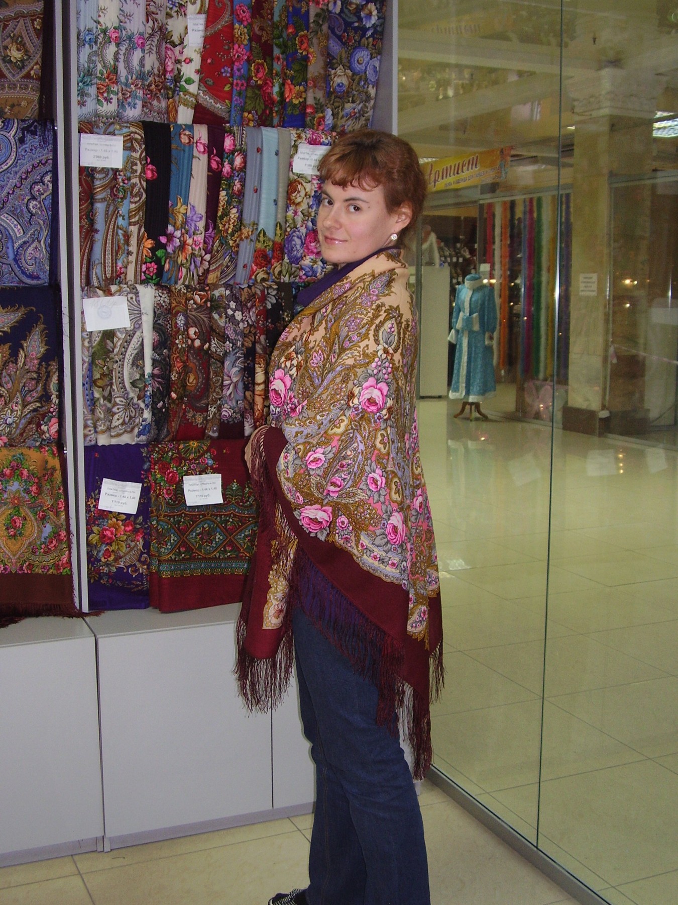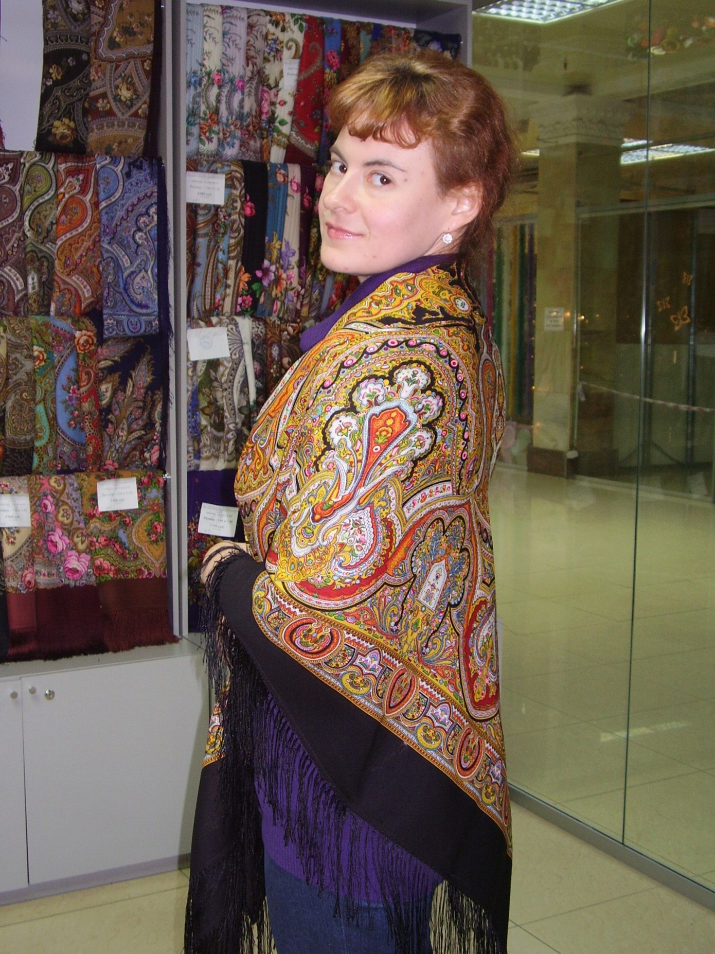 Демонстрируем ношение платков и шалей.