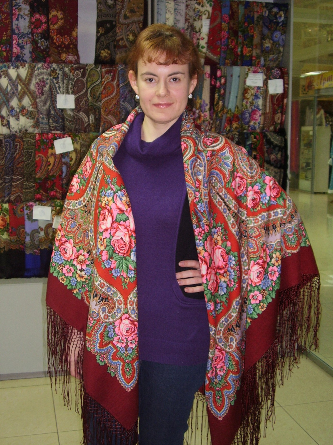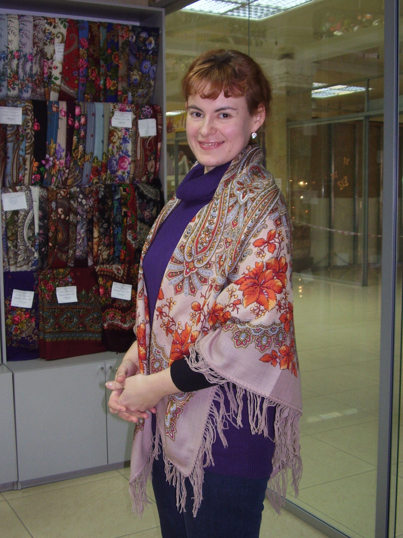 Демонстрируем ношение платков и шалей.