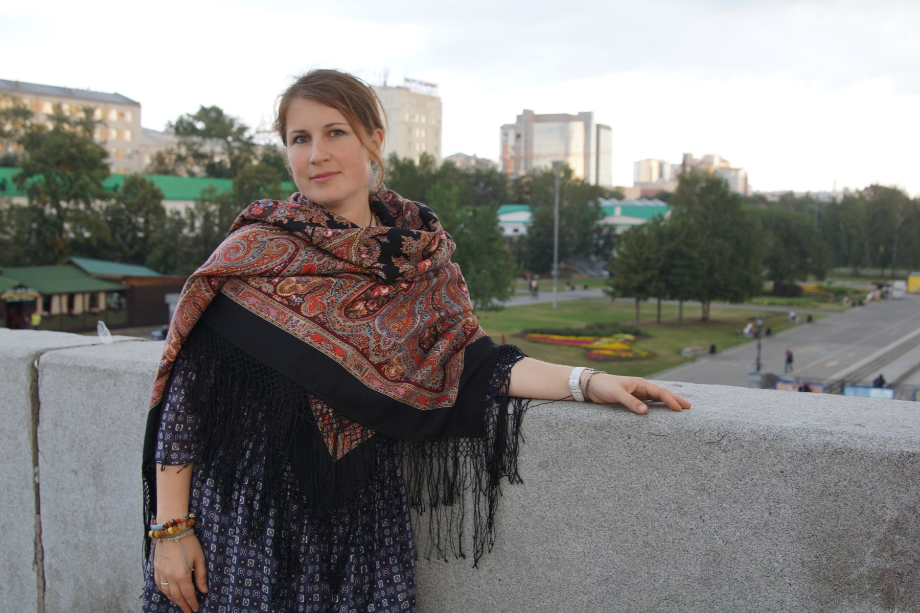 Демонстрируем ношение платков и шалей.