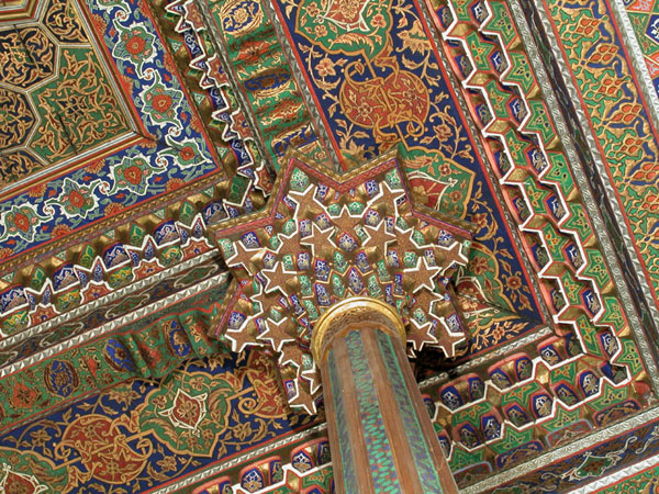 Потолок. Резной из дерева, расписной - роспись называется "накш". У элементов тоже есть свои названия, и, зачастую - символическое значение.