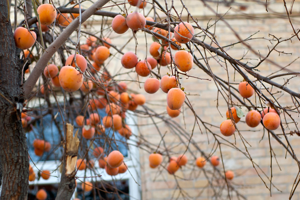 Во дворе растет вот такая хурма. Нам предложили нарвать и взять с собой, но мы поблагодарили и отказались - подмороженную, мягкую, не очень любим.