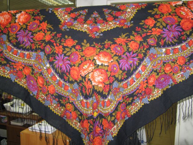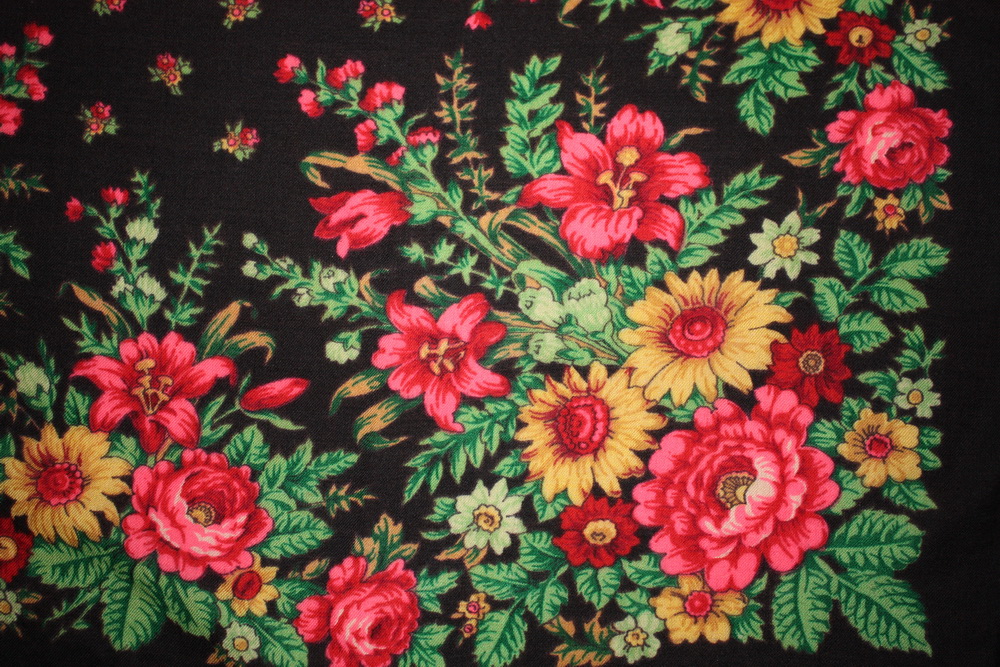 Милые шалелюбушки! У нас есть платочек, год выпуска неизвестен, шерстяной и с шерстяной каймой, размер был (наверно) 90х90 ( от стирки платок перестал быть квадратным), рисунок сохранился и совершенно не испортился. Я думаю, что платок павловопосадский, но спросить уже не у кого. Сегодня наконец его сфотографировали и решили выложить на форум.Внимательно просмотрели до этого тему ПОМОГИТЕ ОПОЗНАТЬ, но не нашли похожий, с такими жизнерадостными лилиями. Может кто-то из вас его узнает. Вдруг повезет? Заранее благодарны.