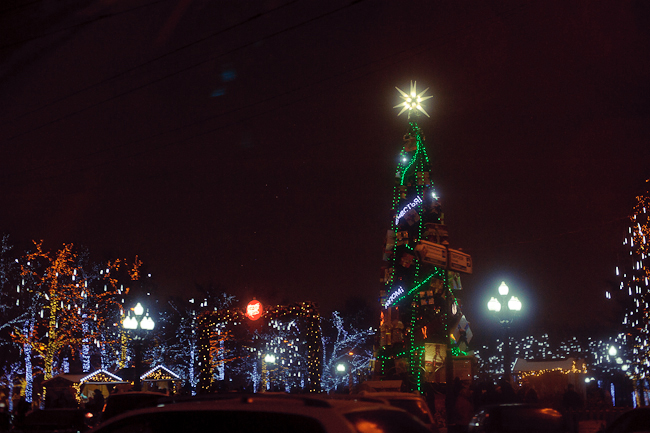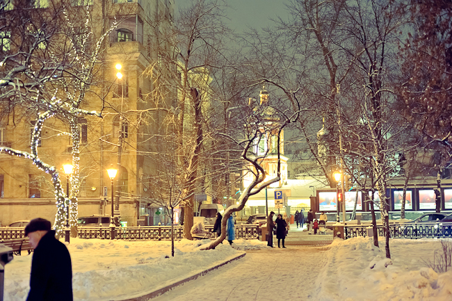 И еще: мы тоже проехались и прошлись по новогодней Москве - почему-то меня ужасно раздражают деревья, окутанные в электрические провода, лампочки на которых горят жутким синим цветом... Причем, украшен таким образом только ствол и немного нижних веток, в темноте дерево с такой подсветкой кажется как бы обрубленным, отчего становится несколько не по себе... На некоторых фотографиях Branchette это отчетливо видно.