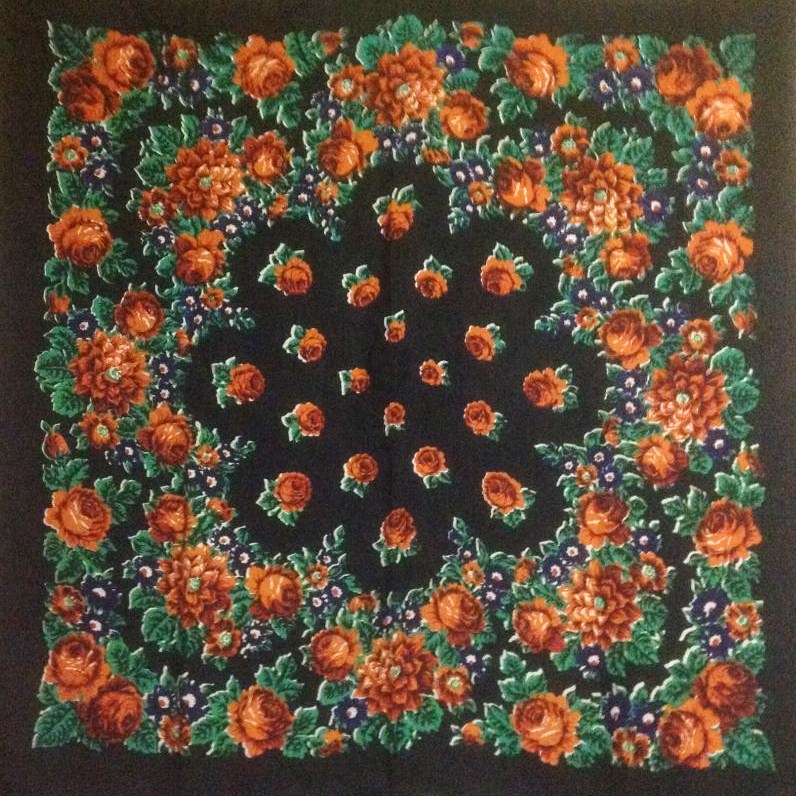 Очень красивый платок! Обалденный. Явно из старинок. Я такой старый рисунок не могу опознать. Вы правы, это какая-то версия кругового мотива. И ещё тех времён, когда рисовали маки на ножках с листиками и бутончиками и прочие всякие травинки-стебелёчки. Такие они чудесные, маки эти. А посмотрите, как интересно сделана серединка - ветки с гроздьями цветочков выходят из самого центра, с макушки.Дождинка писал(а):Марфушенька-душенька в шаль завернута, интересно в какую ( рисунок по кругу, вроде, идет)?