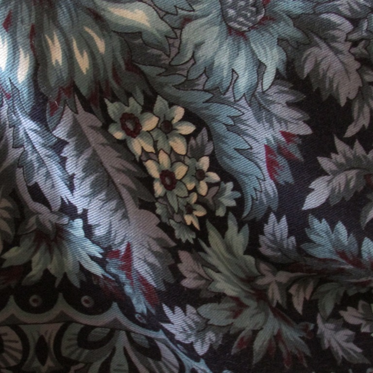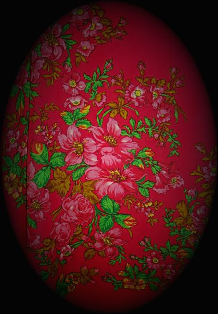 Кусочек красной шали с лилиями. Необычно и непривычно розовое на красном. Лилии солируют, а розы прячутся, надо приглядываться, чтобы их найти. Зеленые листики слишком выделяются, а вот коричневые элементы более гармоничны, на мой взгляд.