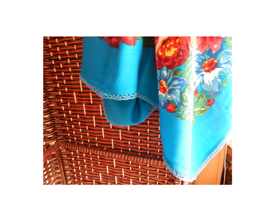 Мне чёрный платочек понравился и синий с "плоским" кружевом. Сама вязать крючком не научилась, кроме элементарных приёмов, поэтому платки не обвязываю.