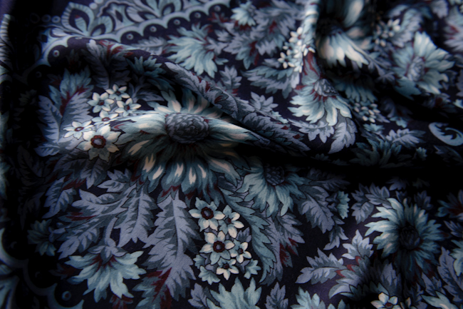 Синие Подсолнухи очень стильный платочек, у меня правда его можно сказать нет. И что бы его не сделать в разных монохромных колоритах. Вот был бы холодный зеленый с вкраплениями сине-голубого, такой цвета глубокой морской пучины, где вода переливается от темной почти черной зелени до синевы, взяла бы. Или в глубоких оттенках красного, или фиолетового. Тоже купила бы.