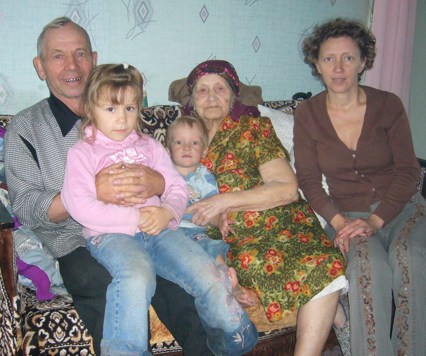 Четыре поколения моей семьи - дети, я, мой дядя, моя двоюродная бабушка, родная сестра моего деда, погибшего на фронте в 1943 году. Ульяне Пантелеевне Шашковой сейчас 93 года. С 1941 года, проводив мужа на фронт, она живет одна. Замуж больше не вышла, детей нет. Родственники помогают ей, но она до сих пор обслуживает себя самостоятельно, даже готовит сама. БабУля замечательный человек. Удивительно жизнестойкая и жизнелюбивая. Дай Бог ей здоровья!