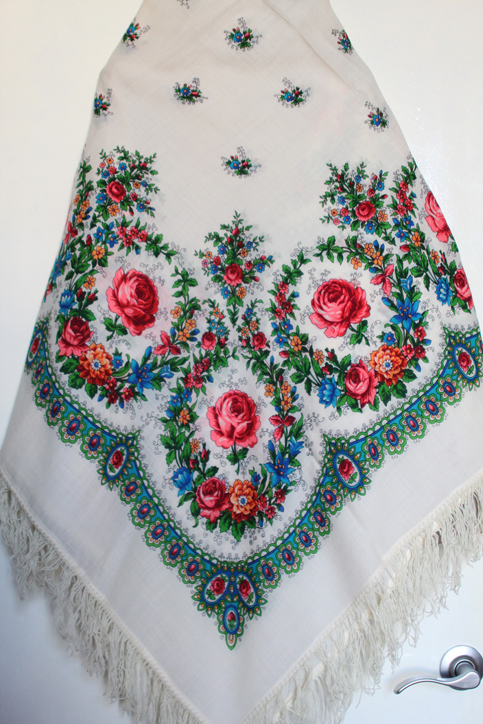 Получила посылку с Мануфактуры. Вечерняя заря-18 платочек симпатичный,но шерстяная бахрома не очень.