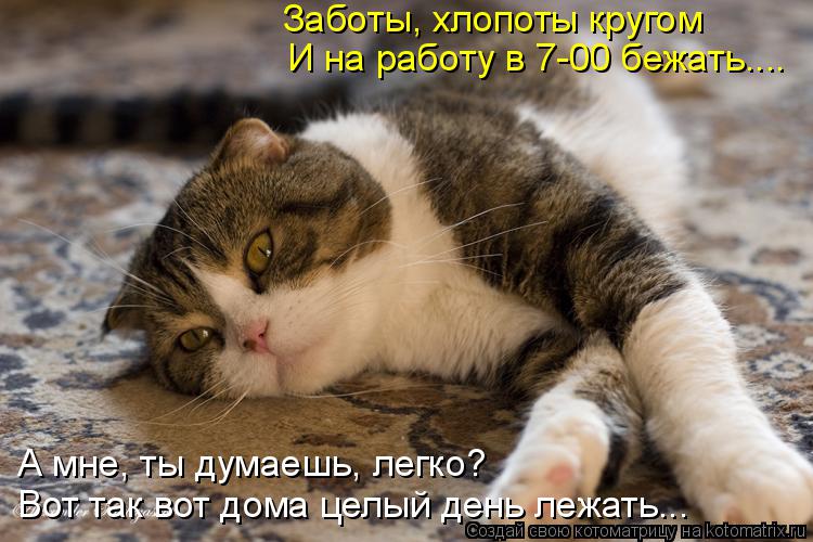 Вытереть три лужи, подобрать какашку. Выдать творожок и витамины. Пока жует, по быстрому умыться, покормить кота на недоступном для посягательств подоконнике.