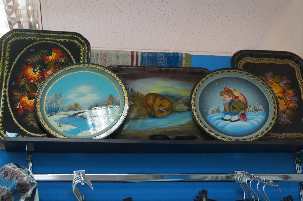Кроме платков и платьев в магазине есть тагильские расписные подносы (на сайте они то же есть и можно приобрести).