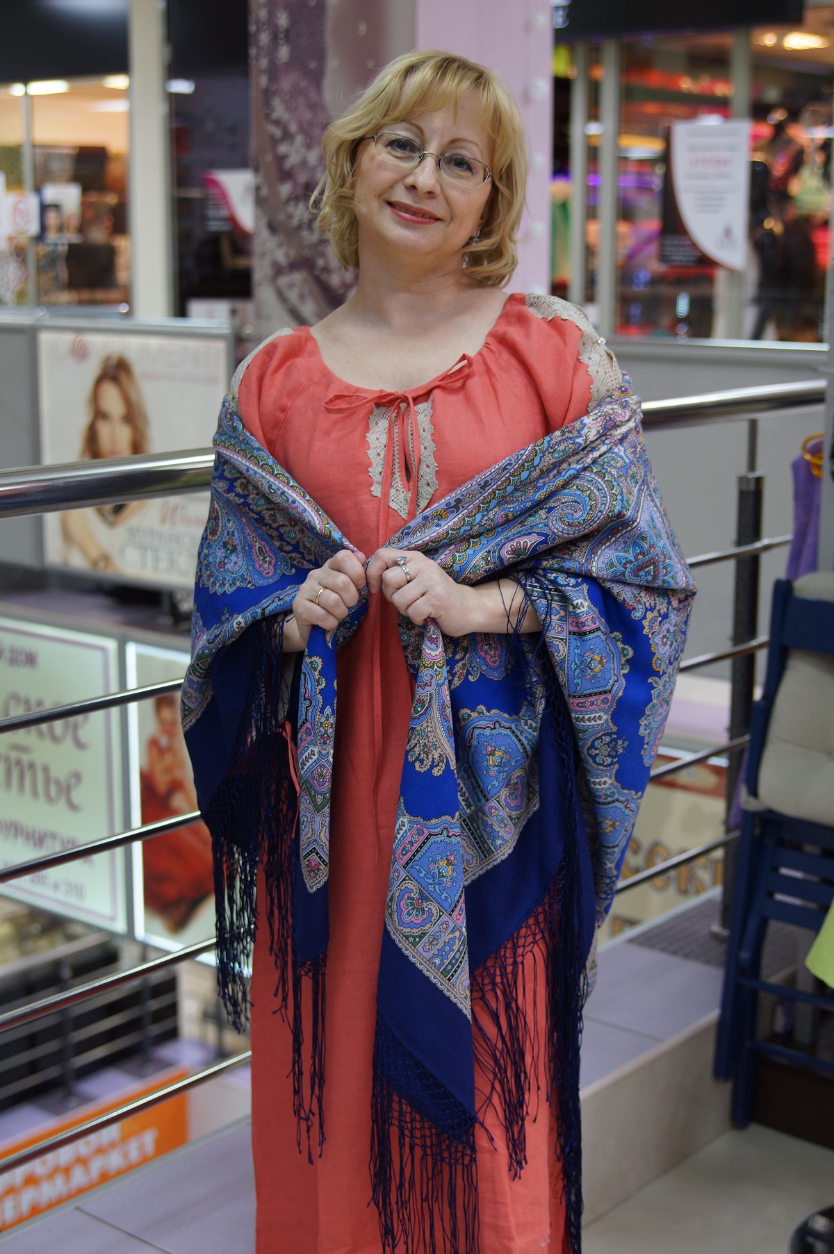 Демонстрируем ношение платков и шалей.