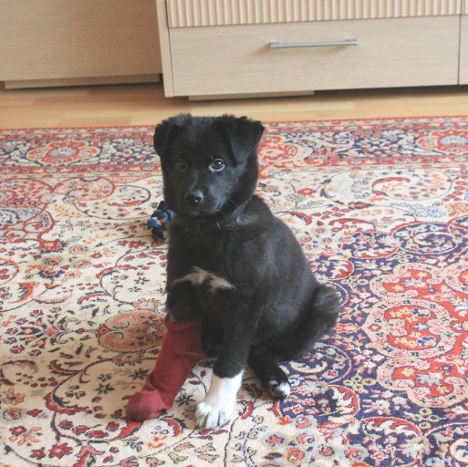 С нами такое случилось впервые и мы малость растерялись. Пришли в себя в ветклинике , когда уж сделали рентген и наложили гипс. Так что теперь 29 января будем отмечать День двойного прибавления -ребёнка и еще одной собаки. Нашей старшей Лизе-12 лет(тоже беженец), теперь есть и Дуня.