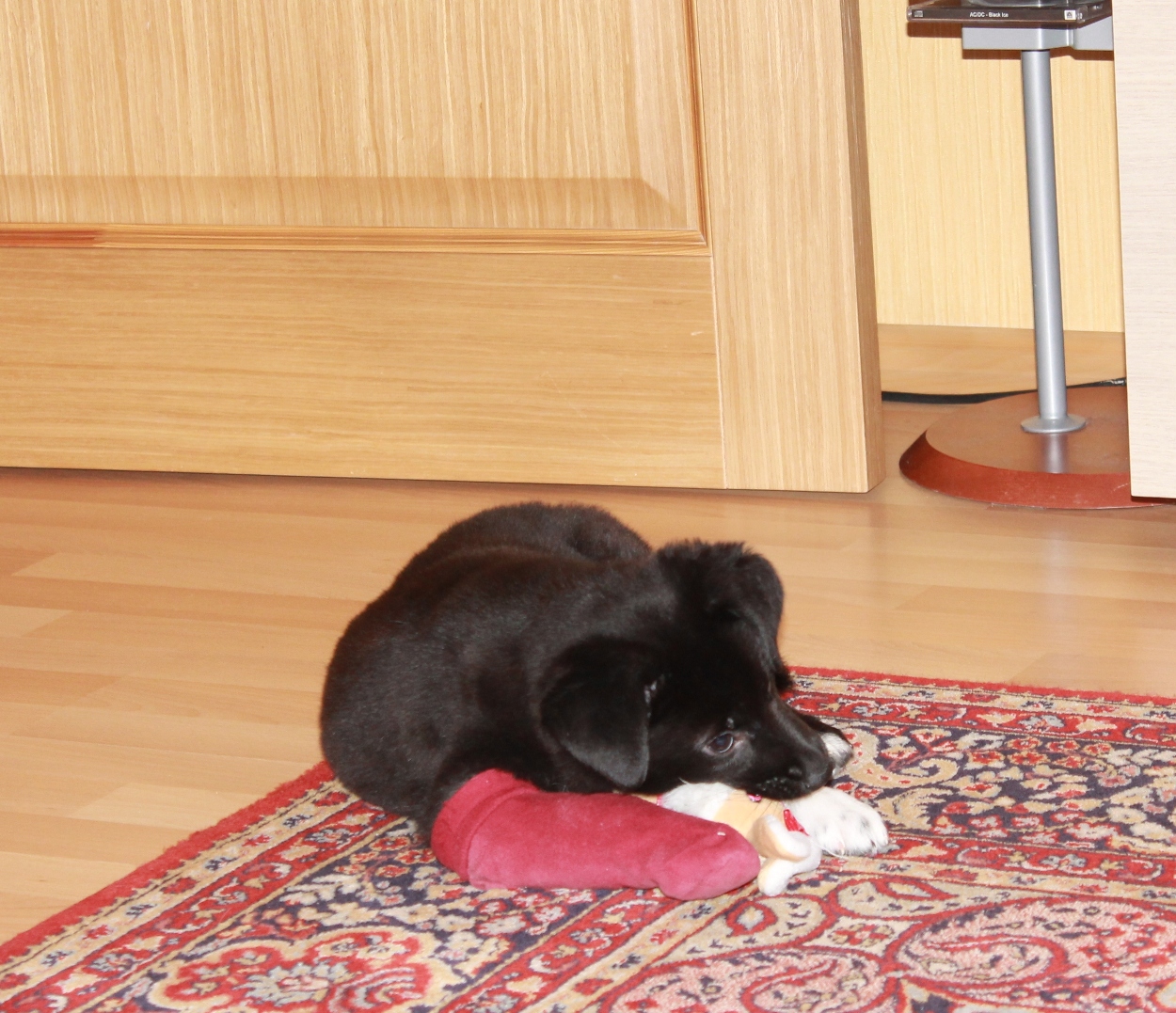 Когда он нагло и быстро на глазах у всех лезет на стол за колбасой и утаскивает кусок грамм 400 вместе с пакетом бегом между наших ног, фотать просто некогда. Догоняем, отбираем - дерётся!
