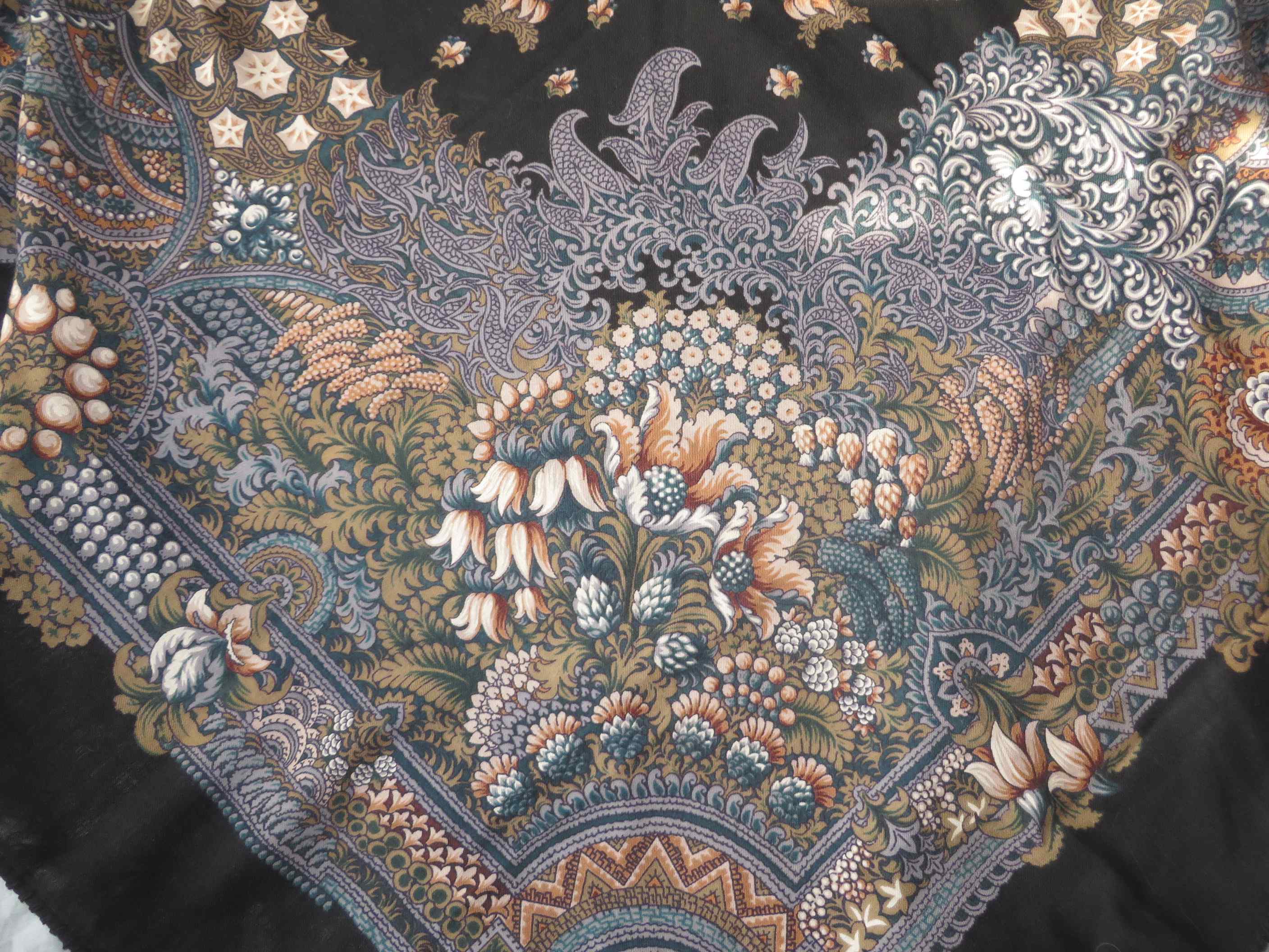 Шаль завораживающая. Я недавно видела женщину в метро, на простую куртку накинута Бархатная ночь этого же колорита. Я так смотрела на неё, что её спутница стала шептать ей в ухо и тянуть в другую часть вагона. Действительно, рисунок просто поражает.