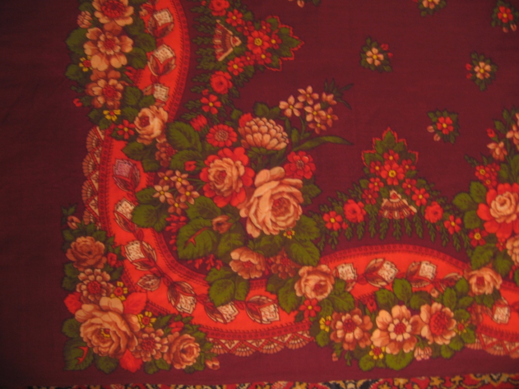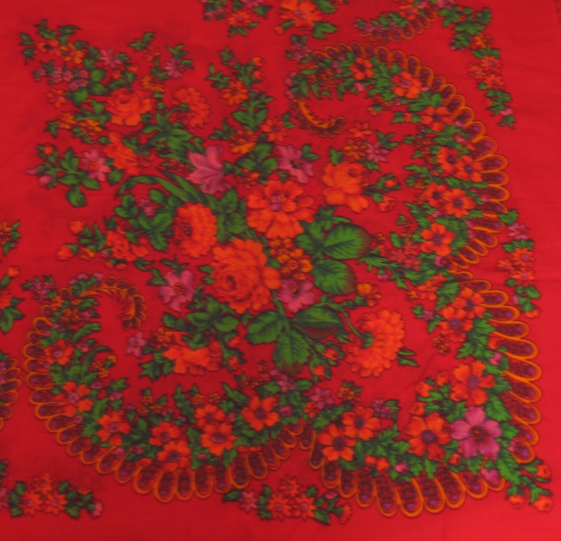 Платок 150см "БС" №7 (бордовый) с ярлыком "МППО"(Московское Павловопосадское Платочное Объединение -?):