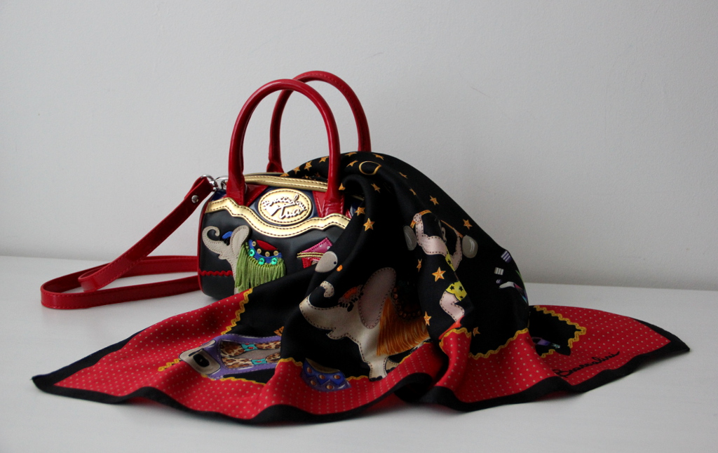 Сделала общий план платка и сумочки со слониками. Сумка - с лицевой и тыльной стороны.