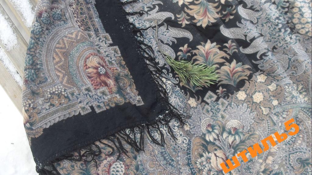 Мне кажется он застиран до состояния сильного истончения ткани. По другому не могу объяснить эффект просвечивания снега, лежащего на скамейке через ткань платкаЕвгенияМ писал(а):Мне кажется, он очень застиранный. Рисунок и цвет прекрасны, конечно. У меня аж сердце остановилось на секунду )Branchette писал(а):Только мне он кажется застиранным?