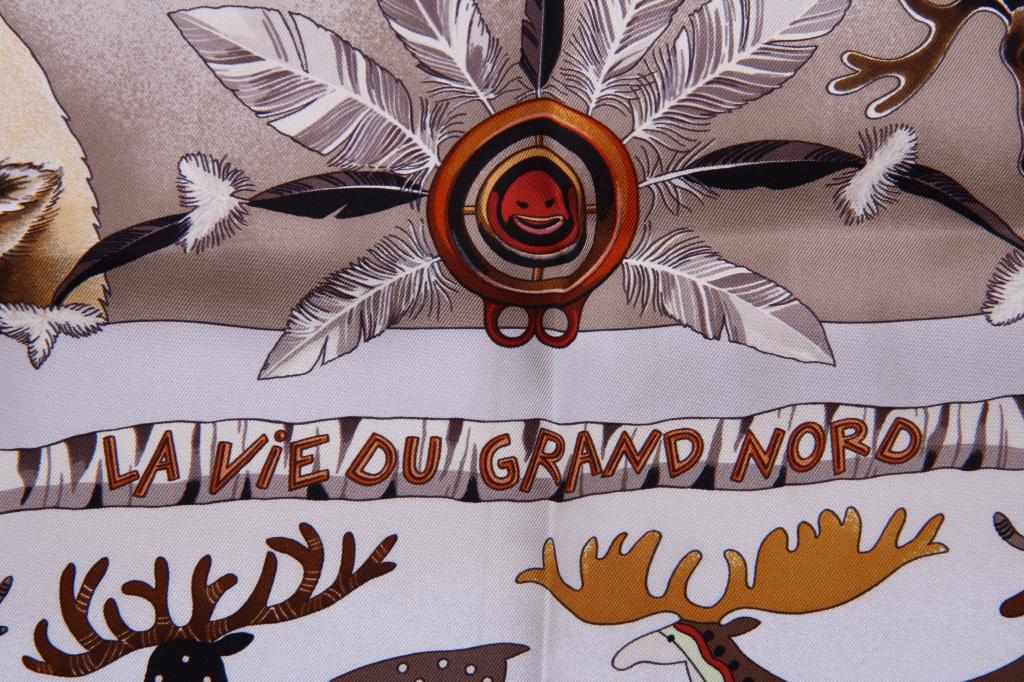 Между Востоком и Западом, от Каспийского моря до Черного, простирается горная цепь длиной более 1200 километров. Это Кавказ, с которым связано множество мифов и легенд, одна из которых повествует о том, как Прометей похитил огонь и был за это наказан Зевсом. Горные вершины, глубокие долины, леса, пустынные территории: в этих суровых условиях живут многочисленные местные народы. На Северном Кавказе расположена наивысшая точка — гора Эльбрус высотой 5 642 метра, высочайшая вершина России и Европы. Здесь в Кабардино-Балкарии живут черкесы, которые славятся своей красотой, гордостью и храбростью. Этот народ сохранил матриархальный уклад жизни: черкесские женщины всегда были наделены особыми привилегиями. Мужчины и женщины, облаченные в роскошные наряды, подчеркивающие их величественную осанку, ездили верхом на сильных, быстрых и выносливых лошадях кабардинской породы. Мужчины в длинных туниках с серебряными патронташами, женщины в платьях с вырезом поверх украшенных изысканной вышивкой блуз с резными кинжалами тонкой работы... Отдавая дань уважения этой культуре, дизайнер платка изобразил на нем вышитые ткани, различные изделия и украшения.