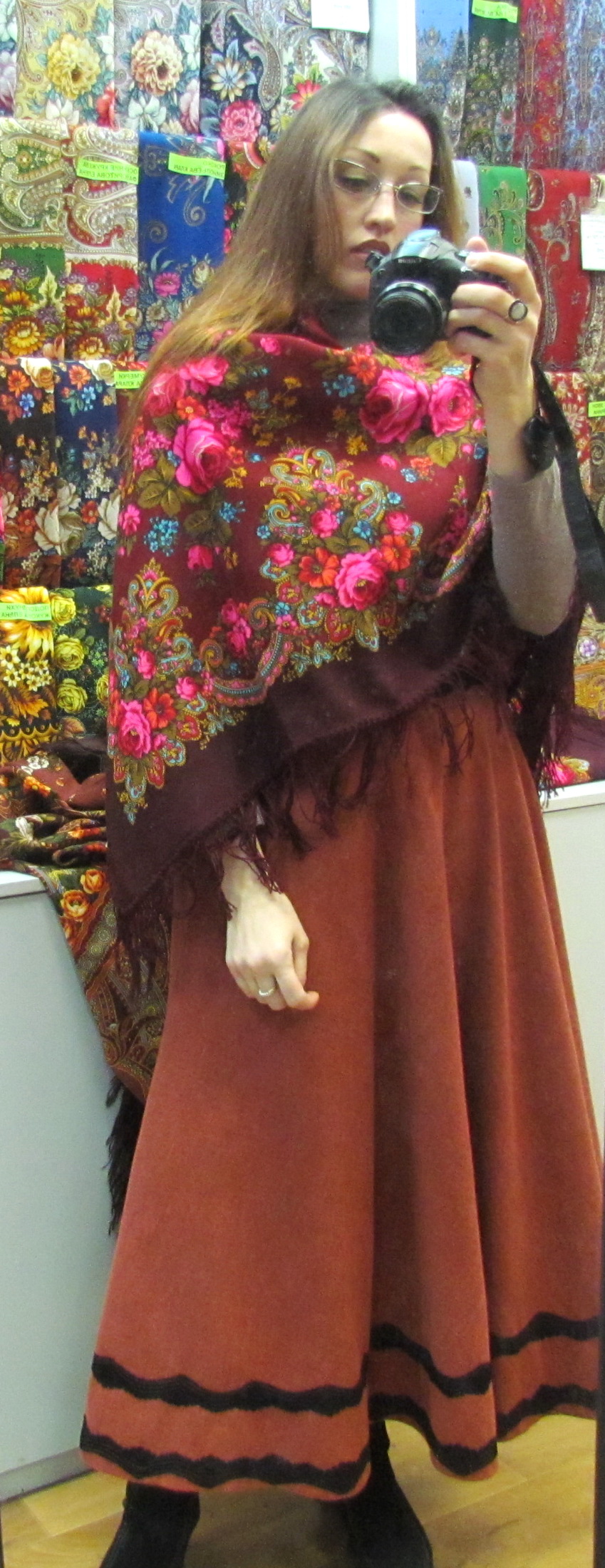 , Юля, для меня с некоторых пор длинные юбки гораздо приятней и удобней в поездках-путешествиях-командировках, чем джинсы даже, вот и получается, что на фото я почти всегда в одной и той же юбке