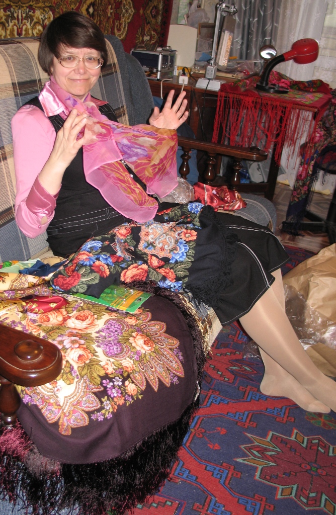 Итак, двухмесячная эпопея почти (в дороге ещё одна посылка, с Птицей) завершилась счастливым концом. Простояв полчаса на почте (последний день отправки налоговых деклараций, однако!), я вышла оттуда окрылённая, неся 3 заветные посылочки. Дома ожидал больной ангиной муж, который жалобно постанывал и даже не мог выразить свои чувства (так болело горло). Так что, высказав ему всё возможное сочувствие, я пробралась с заветными свёрточками в комнату и... увидела входящего за мной мужа с фотоаппаратом в руках. Так что дальнейшее запечатлено для истории. В самой маленькой посылочке оказались два крепдешиновых платочка. Интересно, почему их отложили отдельно? Второй пакетик был пообъемнее. Кажется, в нём Цветущий сад...