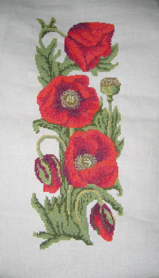 У маков (смотрите выше) мне не понравились розовые края. Решила переделать. А заодно и сами цветы сделала ярче. Вышивка получилась замечательная!
