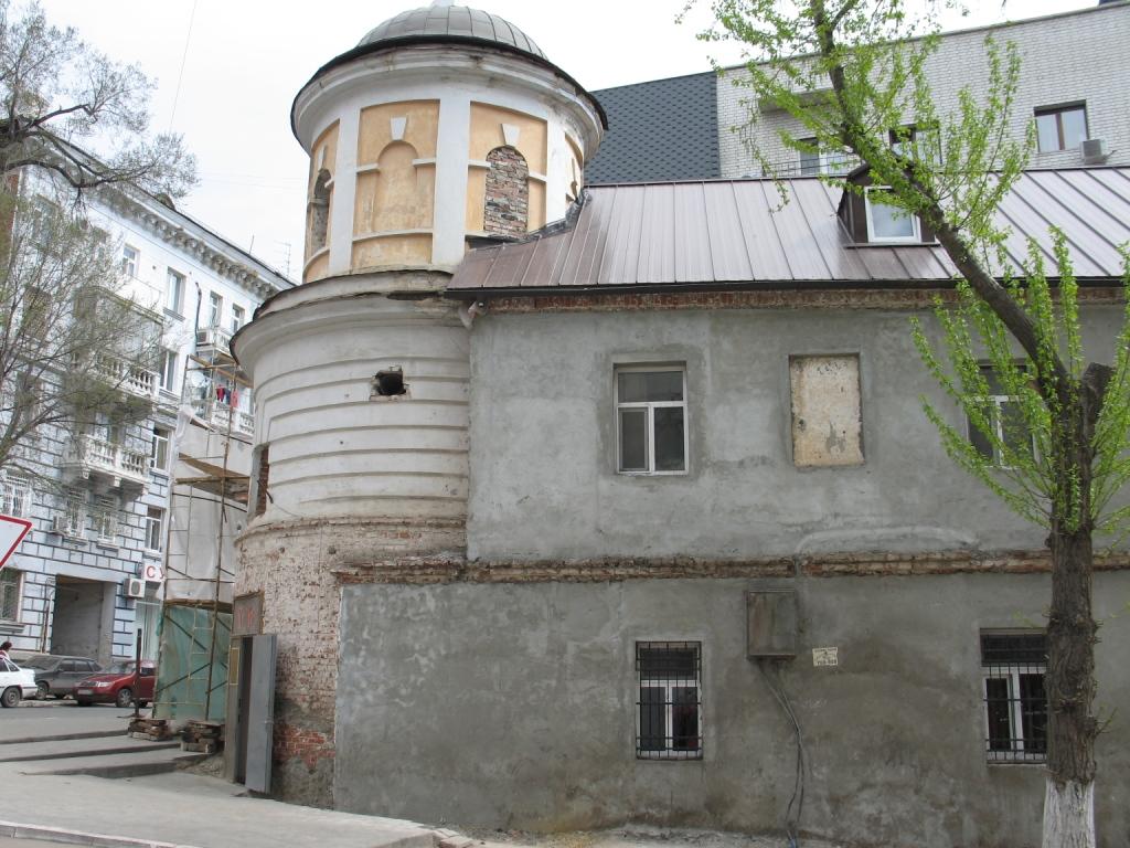 Параллельно набережной, чуть повыше, есть небольшая улочка Лермонтова. На углу одно из самых старых сохранившихся зданий, входивших в комплекс когда-то располагавшегося здесь монастыря. Раньше здесь располагалась платная поликлиника, а теперь открылся храм, но он реставрируется, надеюсь, скоро будет выглядеть по-другому.