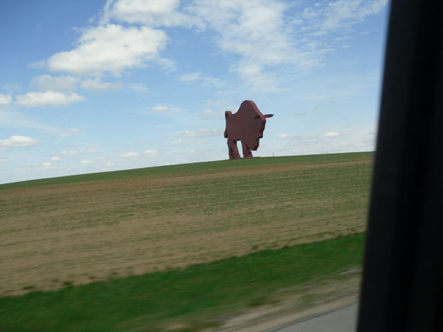 Едем по трассе от Минска, на границе Минской и Брестской обл. стоит в поле огромный зубр