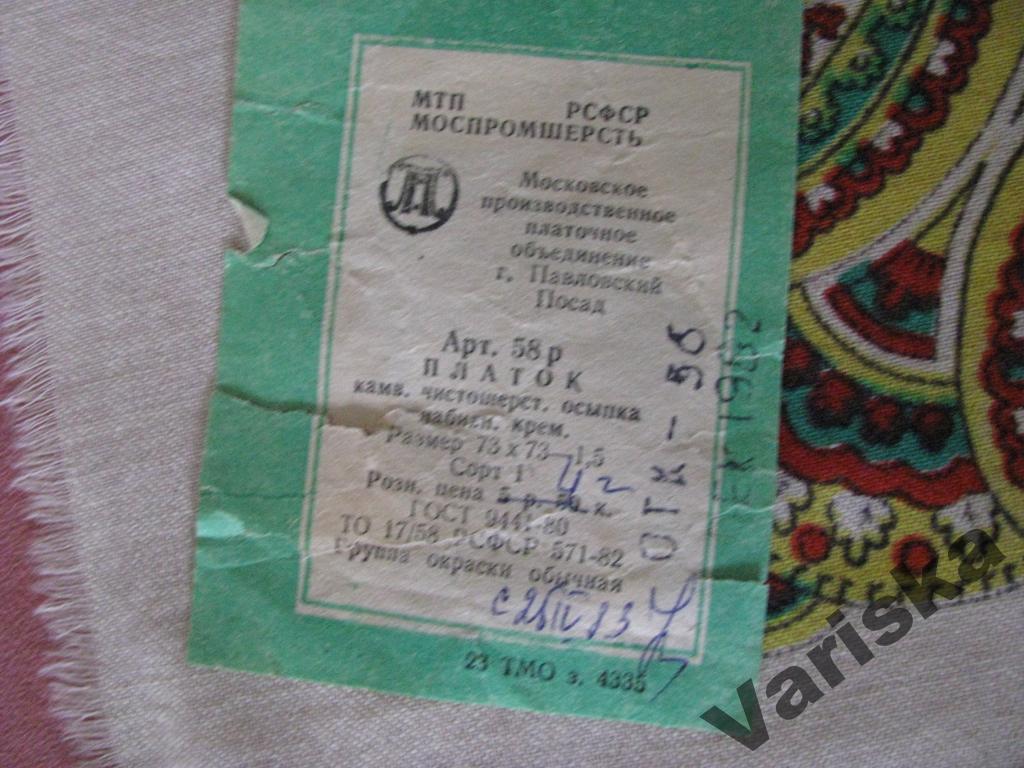 Платочек 72х72 с орнаментом "Paisley"_Этикетка МППО 1982
