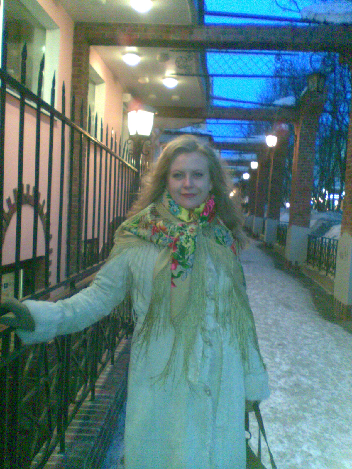 Avesol,вот так и носите Любаву,просто накидывая на плечи, она на вас смотрится очень современно, несмотря на то, что рисунок старинный. Наверное в этом и изюминка старых узоров - они вне времени
