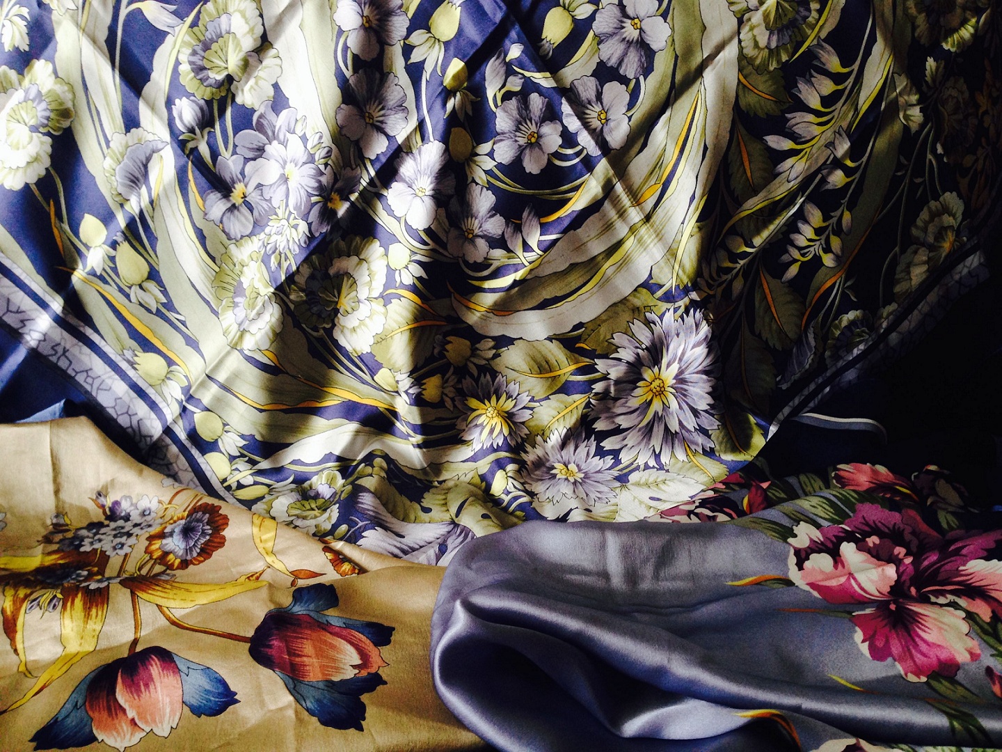 Я сегодня получила платочек который очень долго искала и без которого моя маленькая подборка шелка не могла быть полной. Обязательно сфотографирую экземпляр поподробнее попозже.