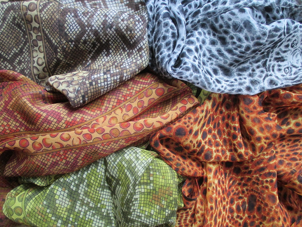 Креп-жоржет : "Пески Калахари" -10,-5,-1, "Кошачий глаз"-2,-16.